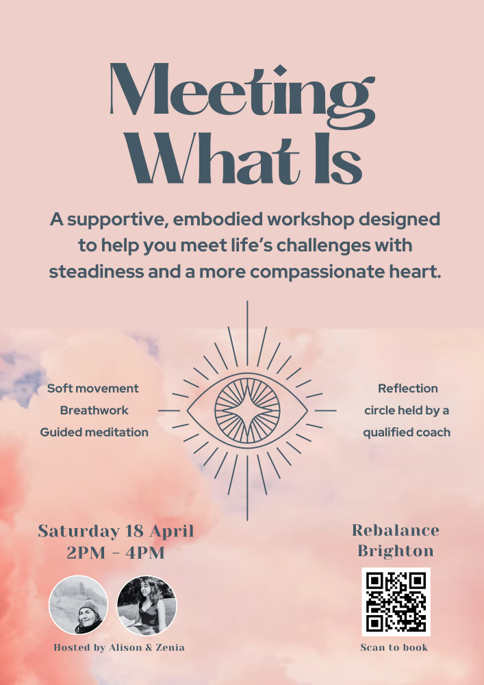 Together your hosts, Alison and Zenia, will guide you through somatic movement, breathwork, meditation and compassion-based inquiry - all aimed at helping you to reconnect with your inner resources and feel more ‘anchored’.